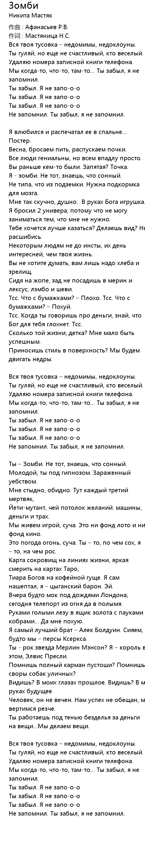 Ты забыл. Я не запо-о-о |