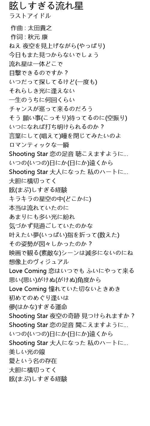 | [01:41.20] | Shooting Star 恋の足音 聴こえますように… |