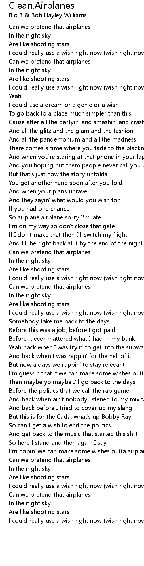 I'm guessin that if we can make some wishes outta airplanes |