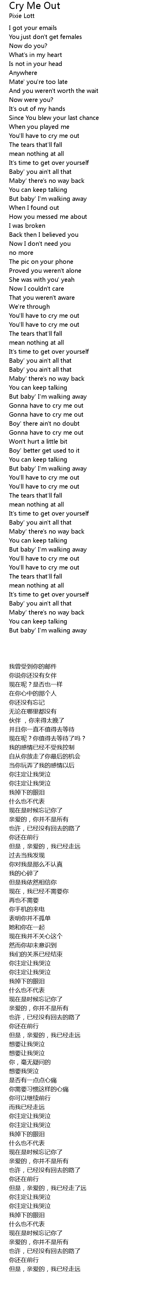 Gonna have to cry me out |