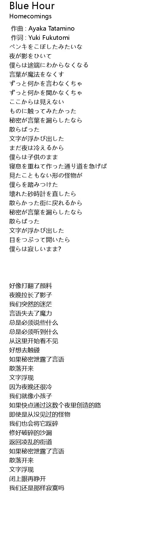 | [00:00.000] | 作曲 : Ayaka Tatamino |