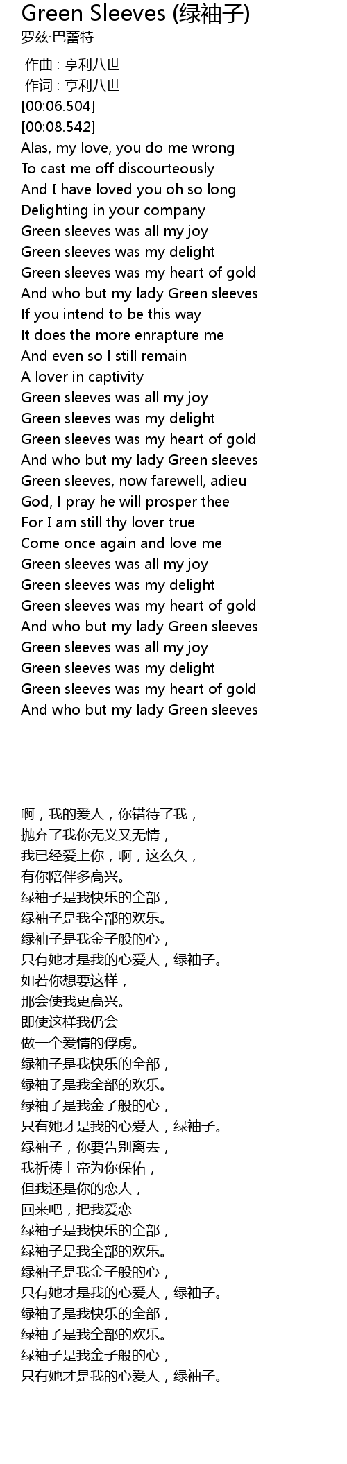 | [02:25.554] | Green sleeves was my delight |