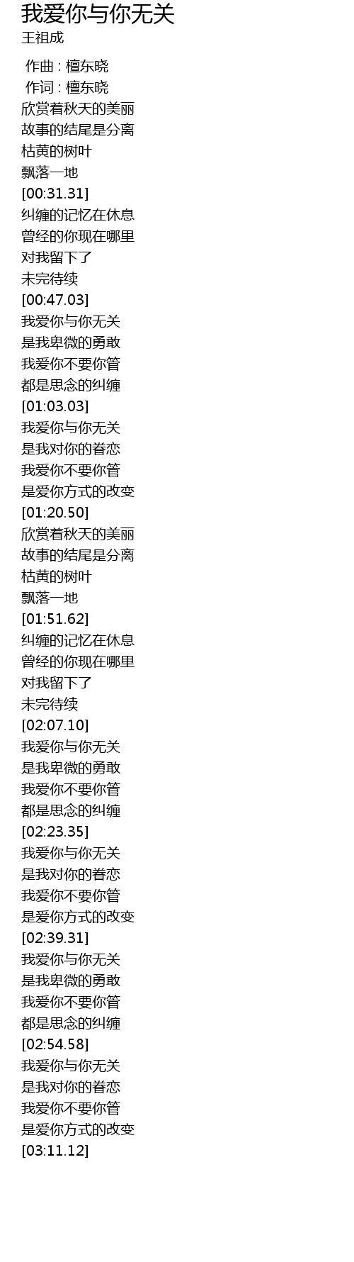 | [00:47.47] | wo ai ni yu ni wu guan |
