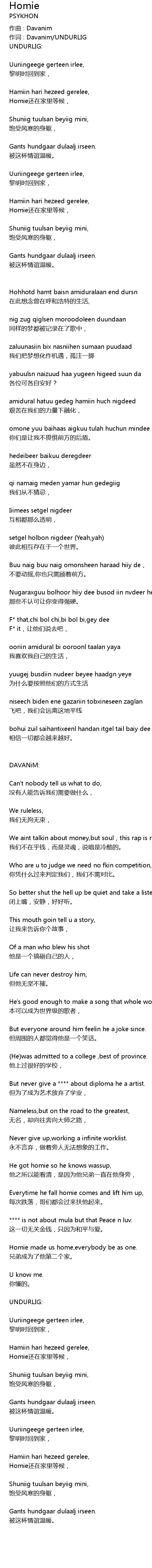 | Homie made us home,everybody be as one. | |