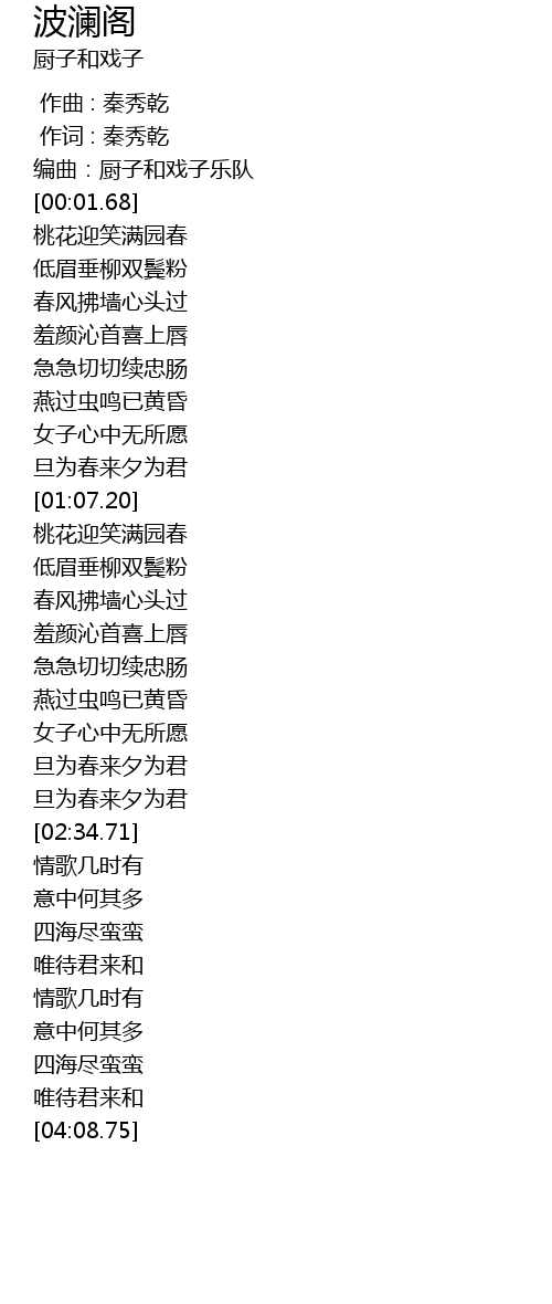 | [00:01.35] | 编曲:厨子和戏子乐队 |