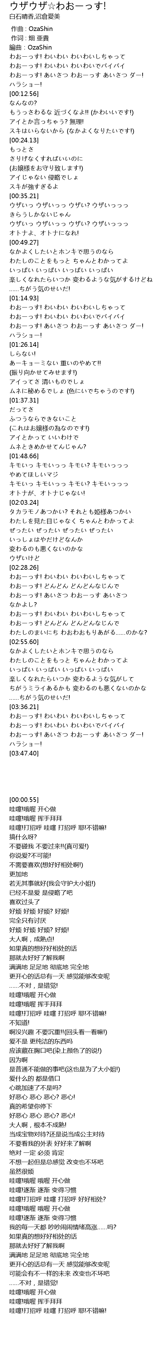 | [00:35.40] | ウザいっ ウザいっっ ウザい? ウザいっっっ |
