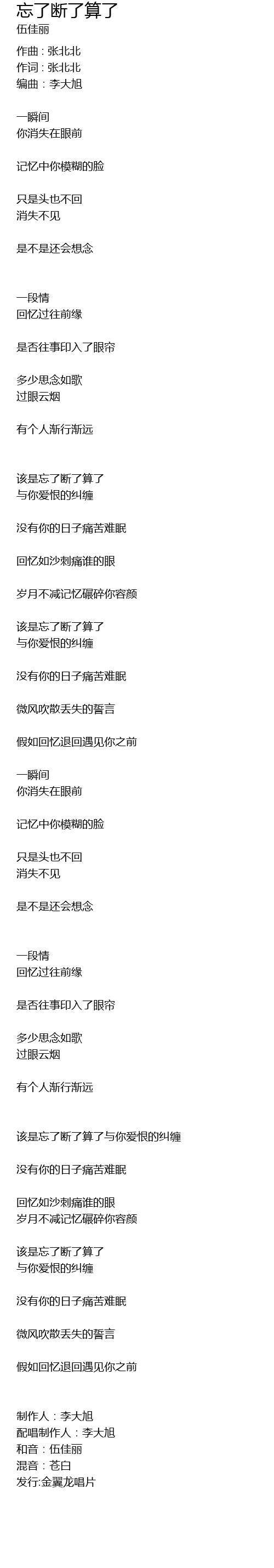 | 该是忘了断了算了与你爱恨的纠缠 | |