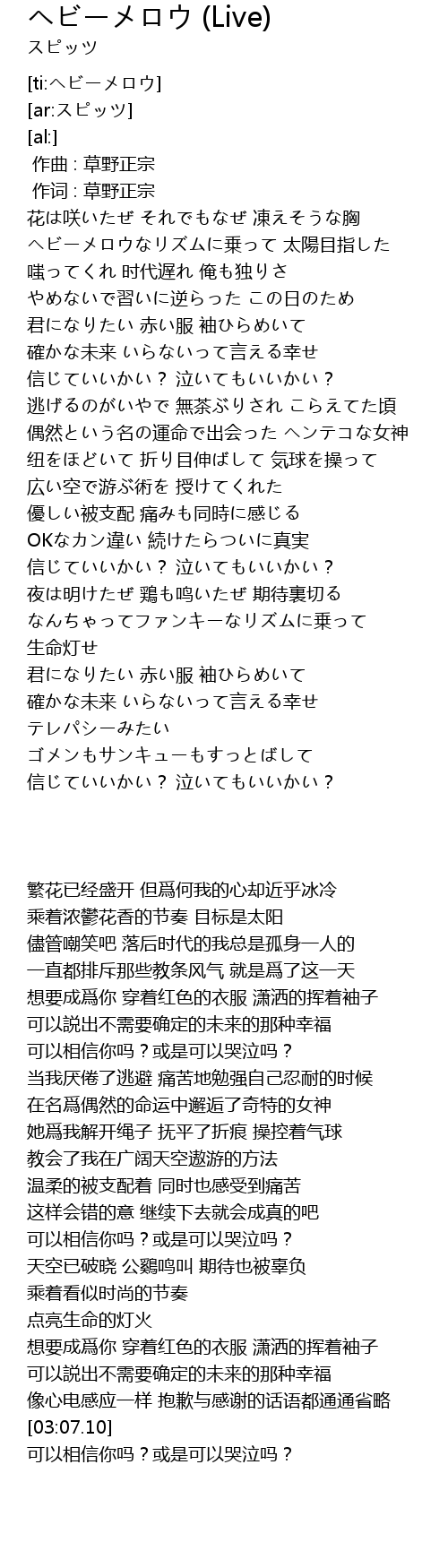 | [03:15.60] | 信じていいかい? 泣いてもいいかい? |