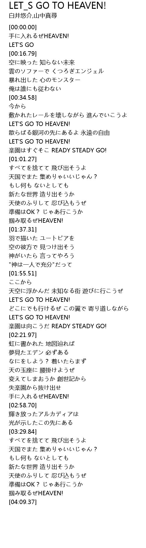 | [00:52.83] | LET' S GO TO HEAVEN! |