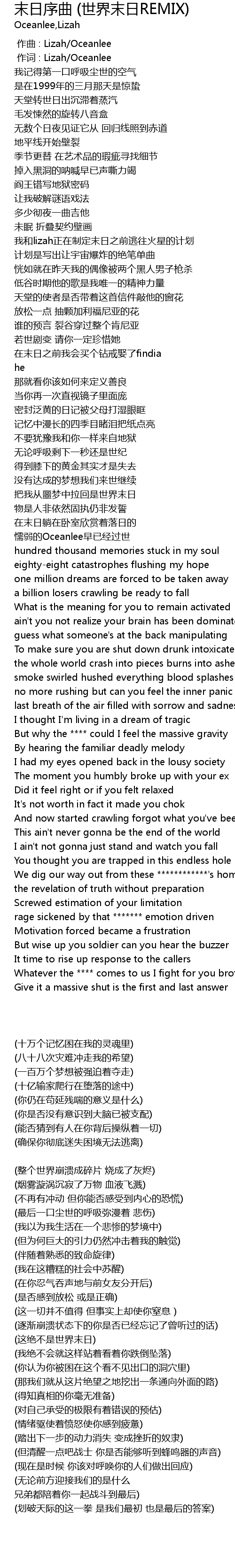 | [00:01.000] | 作词 : Lizah/Oceanlee |