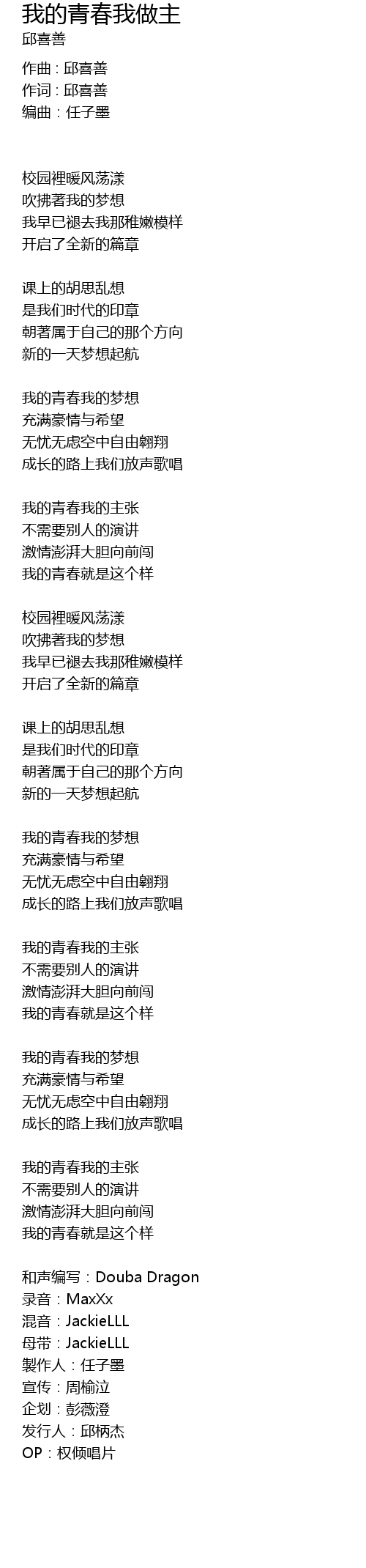 | wǒ de qīng chūn wǒ de zhǔ zhāng | |