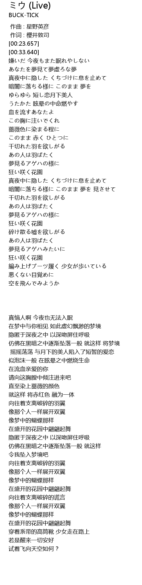 | [00:01.000] | 作词 : 櫻井敦司 |