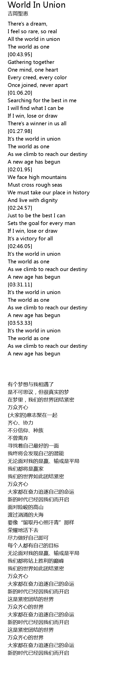 | [01:34.48] | The world as one |