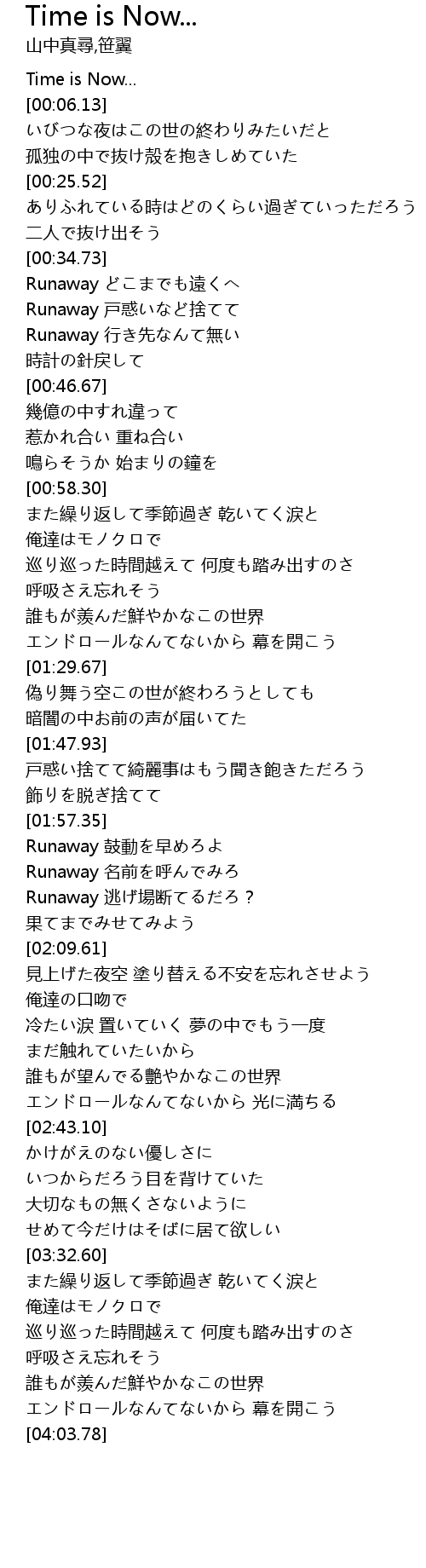 | [01:59.91] | Runaway 名前を呼んでみろ |