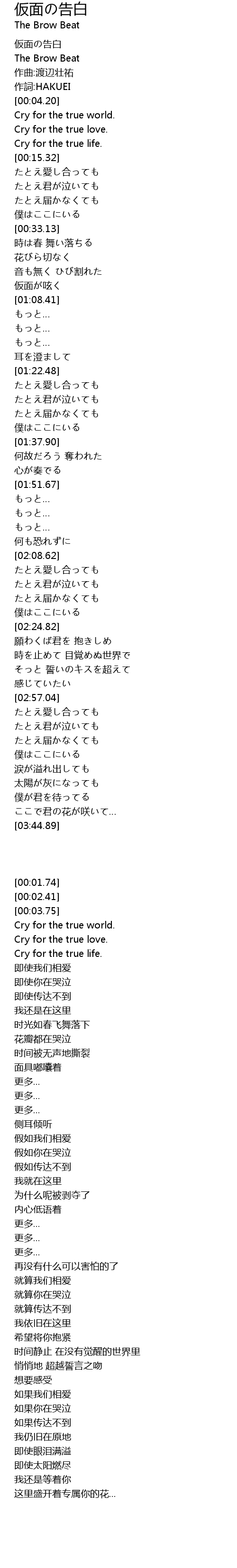 | [00:01.74] | 仮面の告白 |