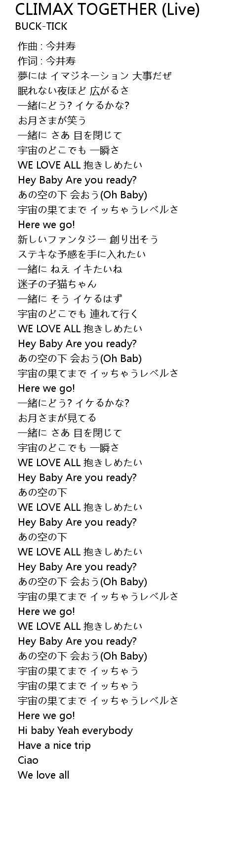 | [01:12.934] | Hey Baby Are you ready? |