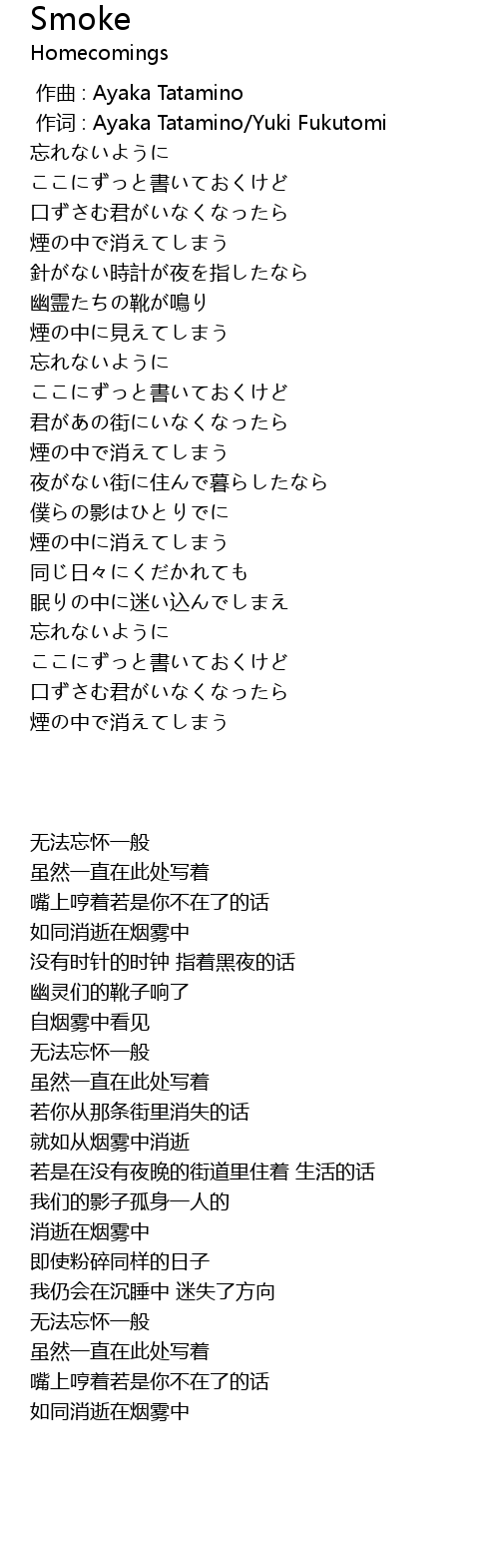 | [00:01.000] | 作词 : Ayaka Tatamino/Yuki Fukutomi |