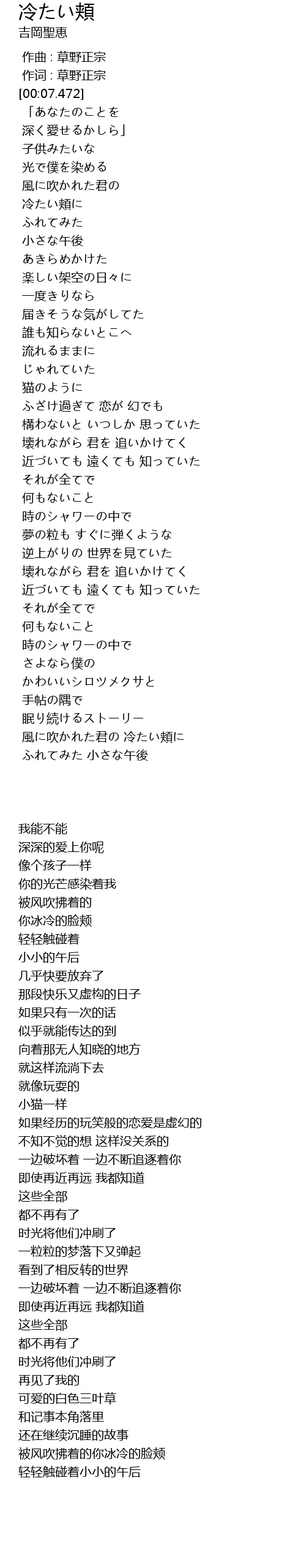 | [03:37.671] | 風に吹かれた君の 冷たい頬に |