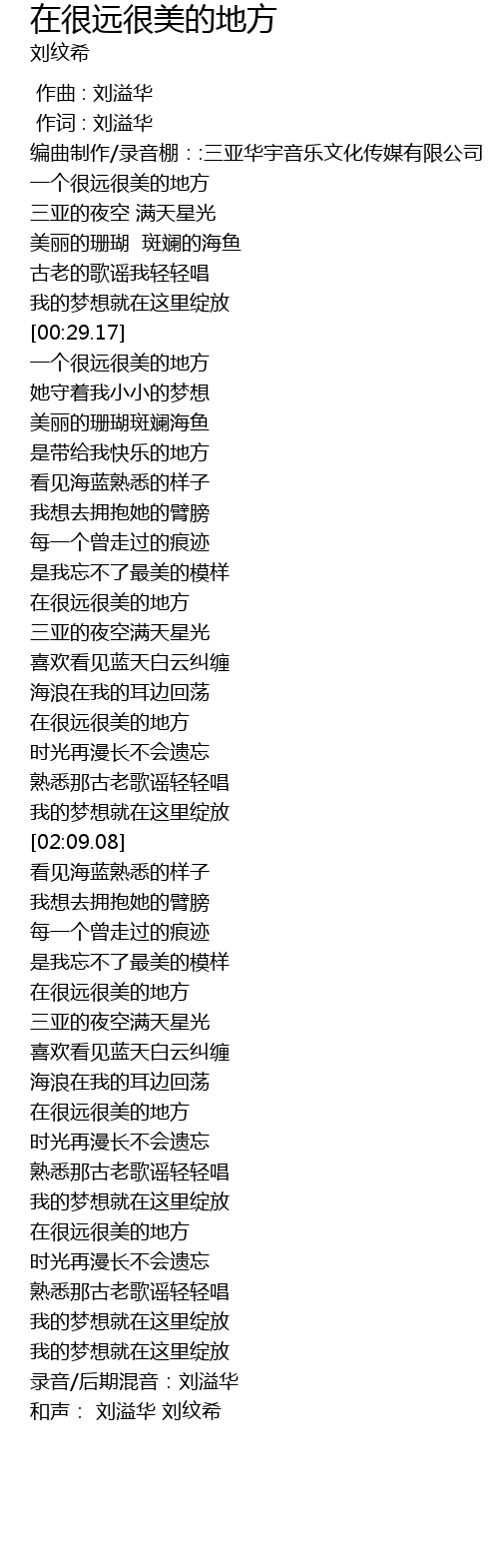 | [04:24.41] | 和声: 刘溢华 刘纹希 |