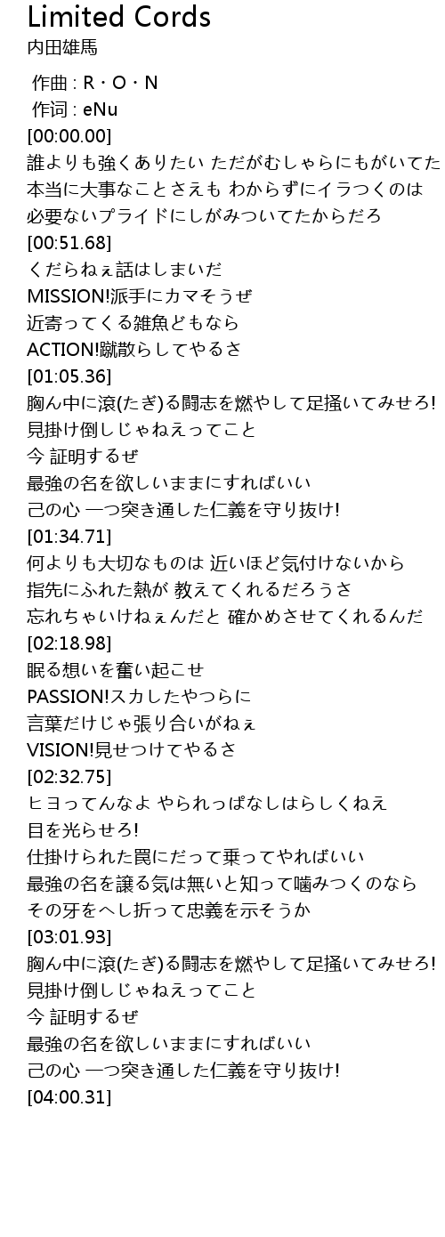 | [03:50.61] | 己の心 一つ突き通した仁義を守り抜け! |