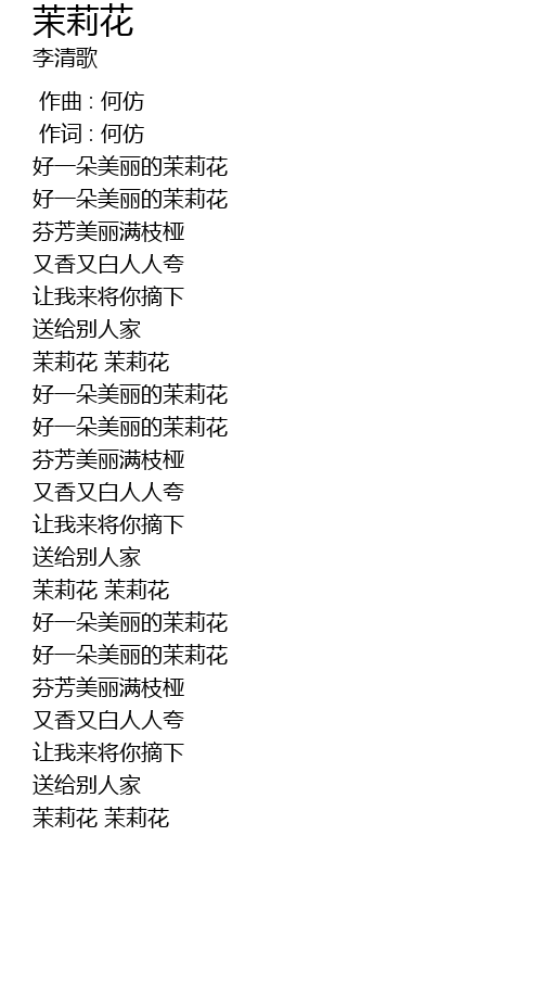 | [00:18.821] | 好一朵美丽的茉莉花 |