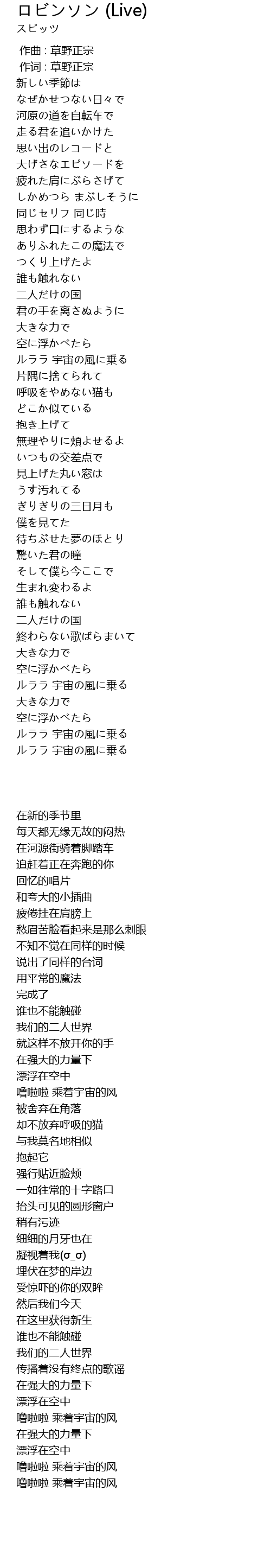 | [00:00.000] | 作曲 : 草野正宗 |