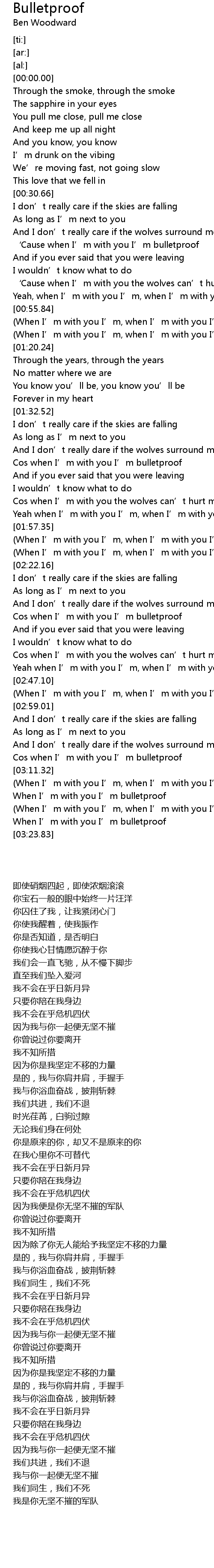 | [01:41.69] | Cos when I' m with you I' m bulletproof |