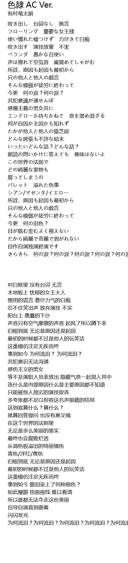 | [02:52.66] | jīn gèng hé lèi sè? |
