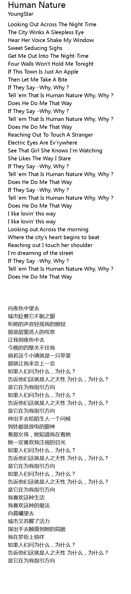 | [00:53.950] | Tell ' em That Is Human Nature Why, Why? |