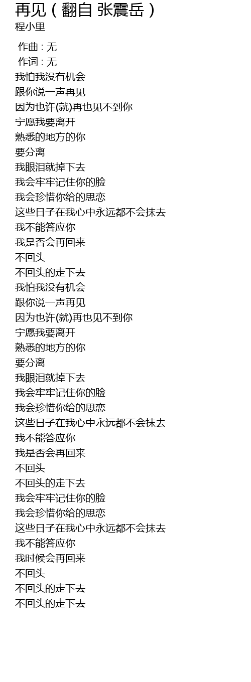 | [00:12.86] | gen ni shuo yi sheng zai jian |