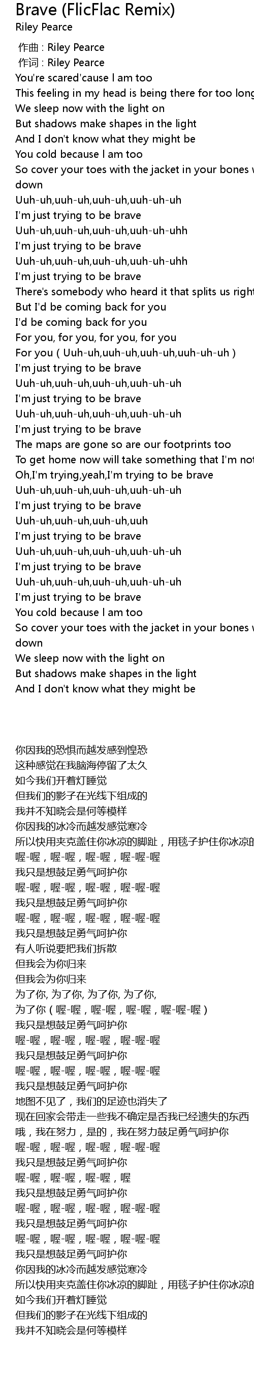 | [02:44.926] | Oh, I' m trying, yeah, I' m trying to be brave |