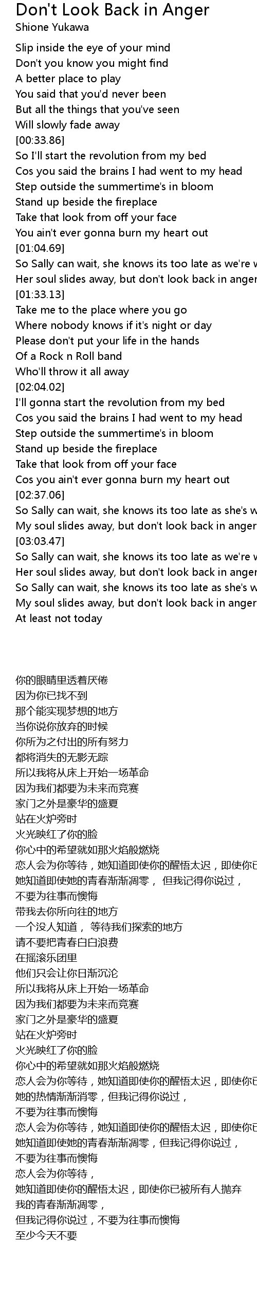[04:14.71] My soul slides away, but don't look back in anger I hear you say