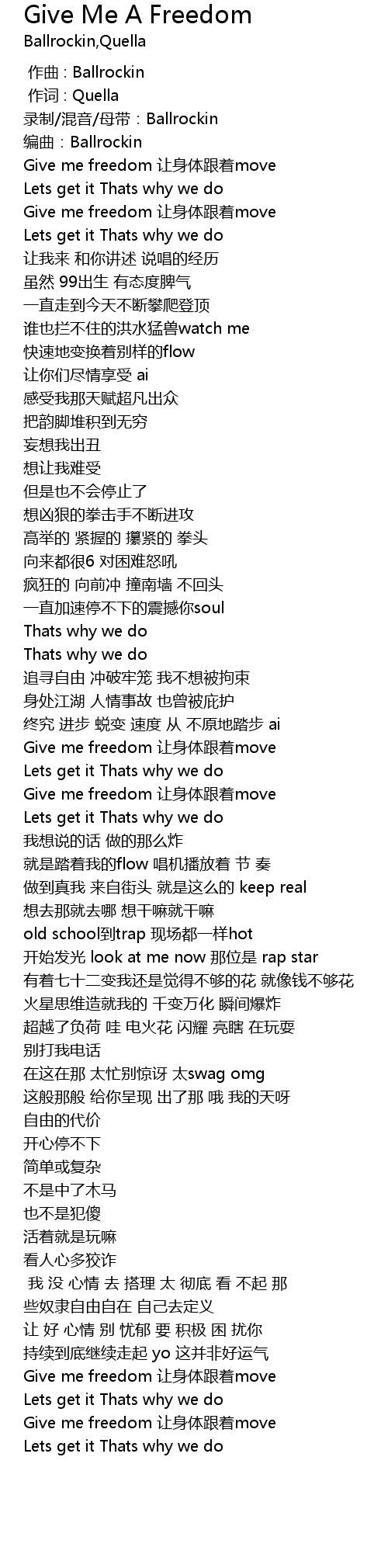 | [00:59.00] | Give me freedom 让身体跟着move |