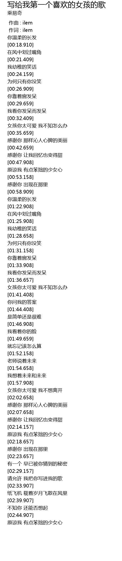 | [01:58.157] | 女孩你太可爱 我不想离开 |