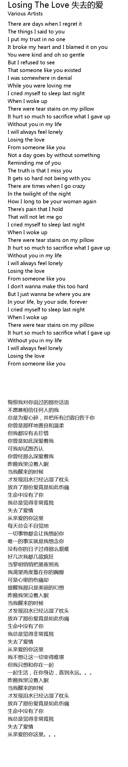 Losing The Love 失去的爱 Losing The Love shi qu de ai Lyrics