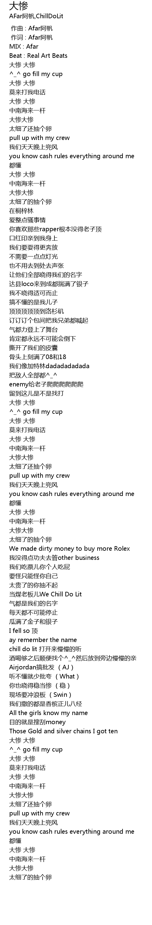 | [01:48.97] | 大惨 大惨 |