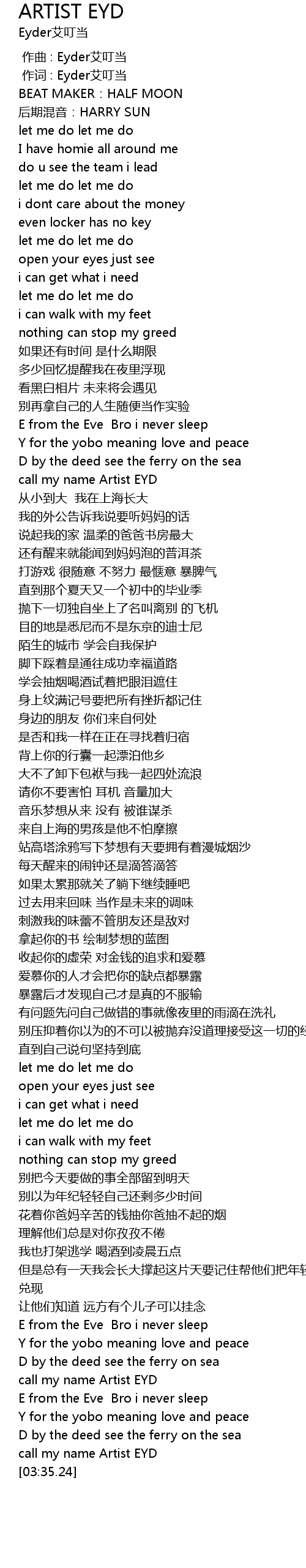 | [00:01.000] | 作词 : Eyder艾叮当 |