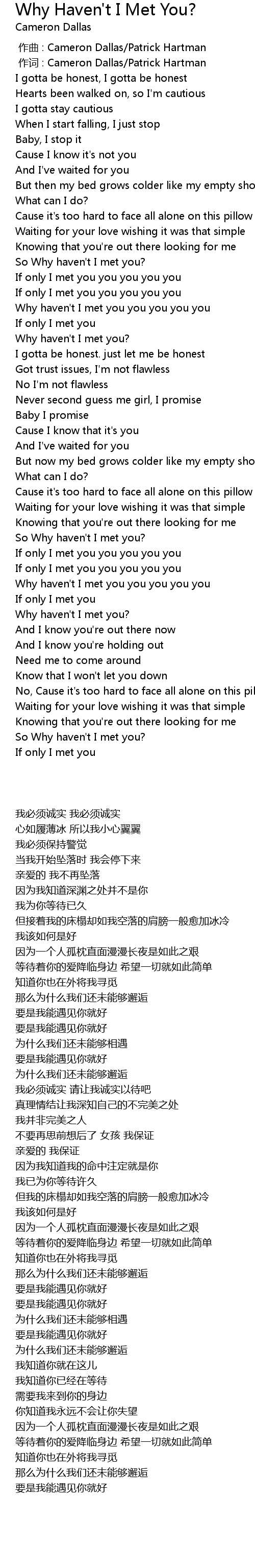 | [00:49.90] | So Why haven't I met you? |