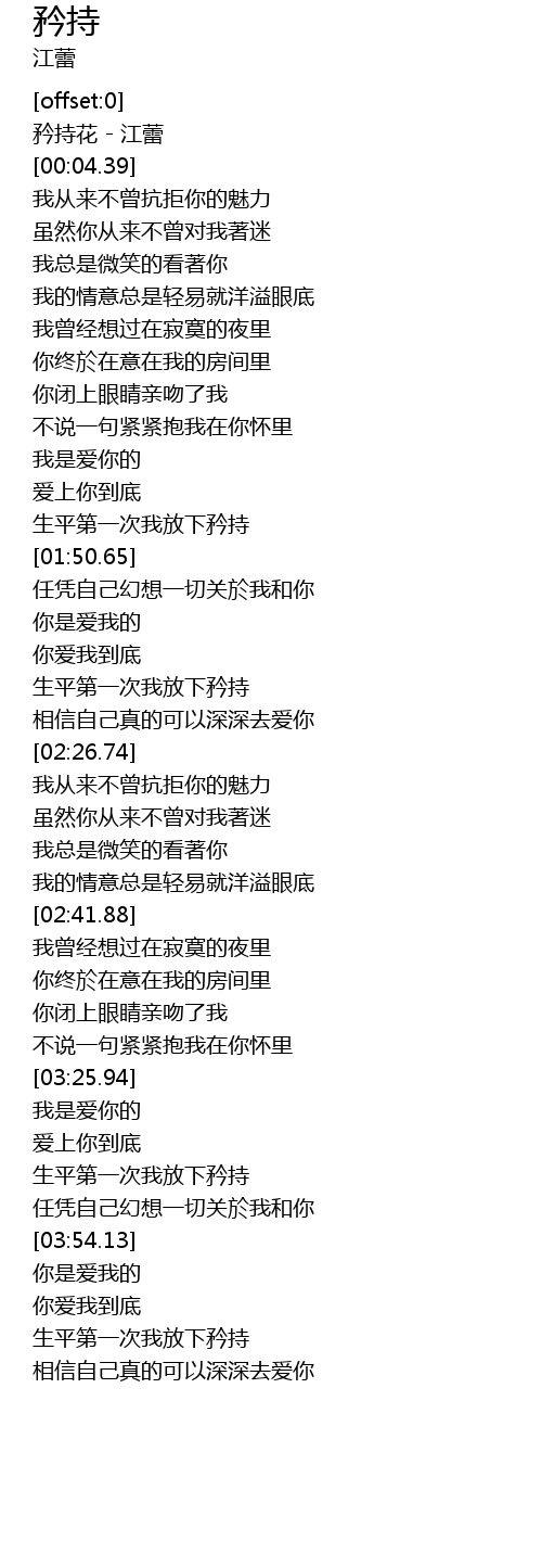 | [00:01.58] | 矜持花 - 江蕾 |