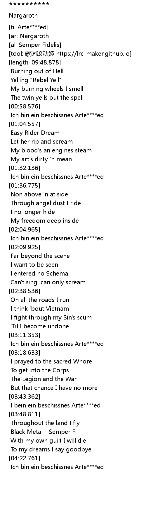 | [04:23.810] | Ich bin ein beschissnes Arte****ed |