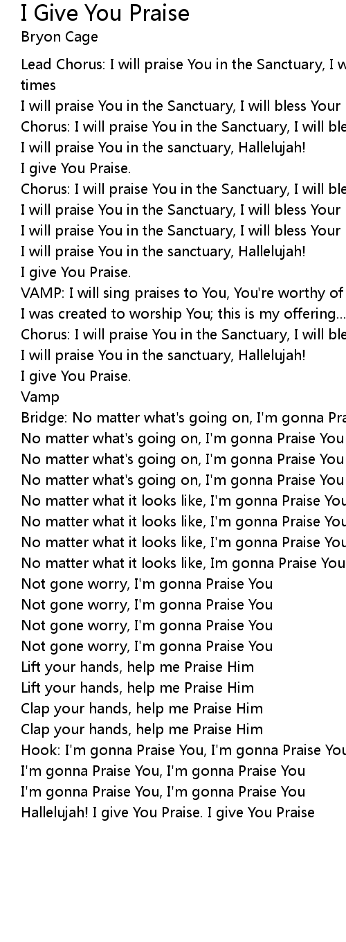 Hook: I'm gonna Praise You, I'm gonna Praise You |