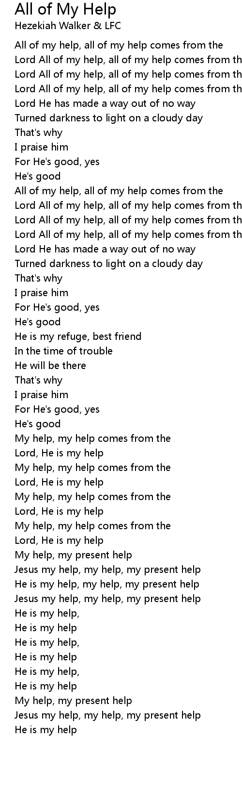 Lord All of my help, all of my help comes from the |