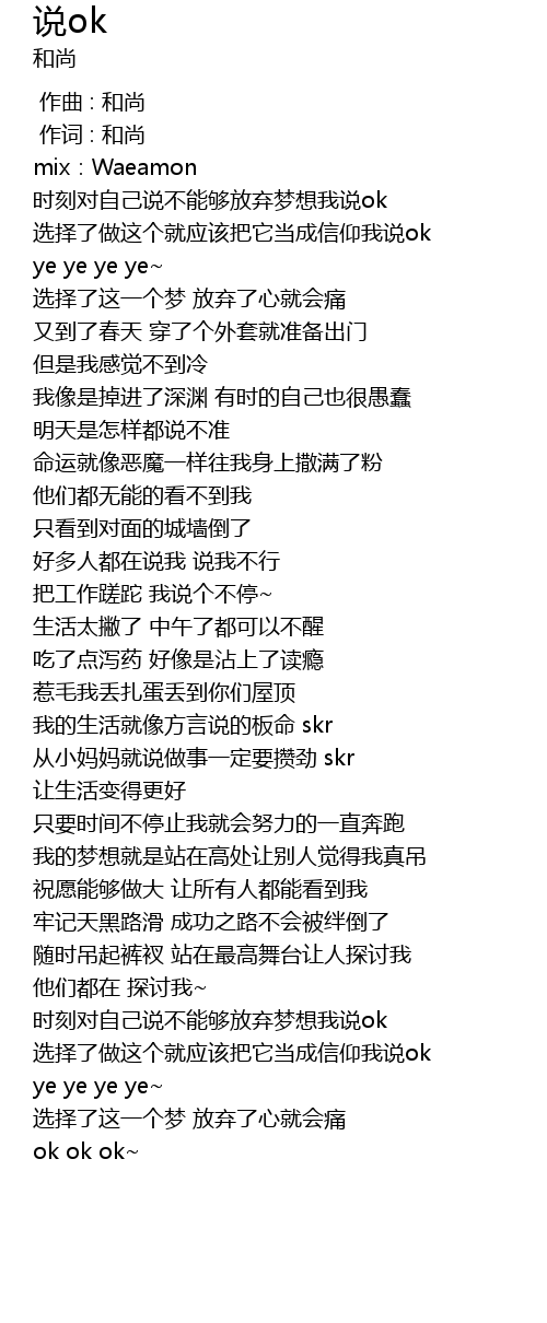 | [00:16.673] | shi ke dui zi ji shuo bu neng gou fang qi meng xiang wo shuo ok |