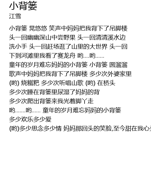 | 多少次睡在背篓里尿湿了妈妈的背 多少次爬出背篓来我光着脚丫走 | |