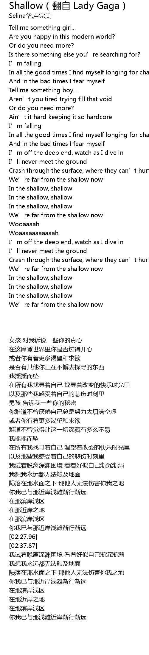 | [02:45.62] | I’m off the deep end, watch as I dive in |