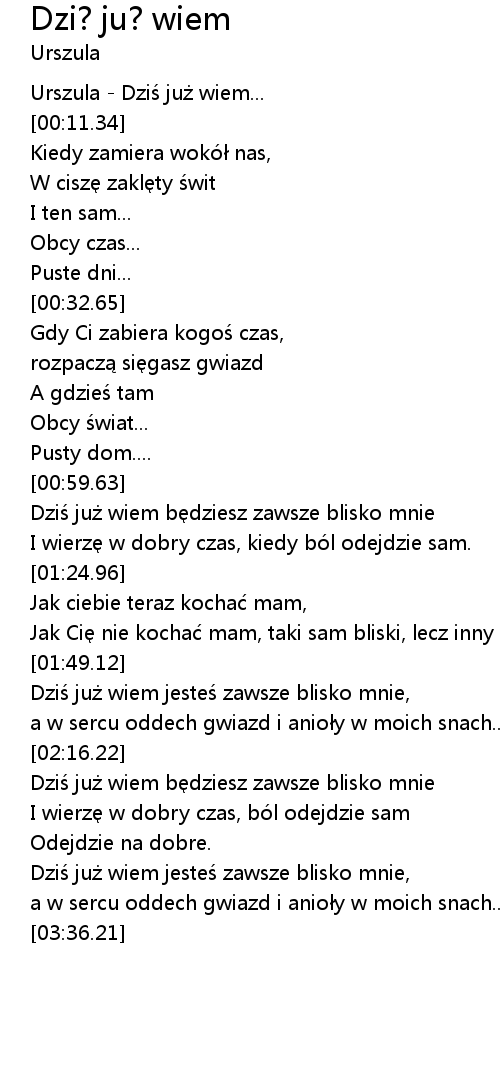 | [00:03.69] | Urszula Dzi ju wiem... |