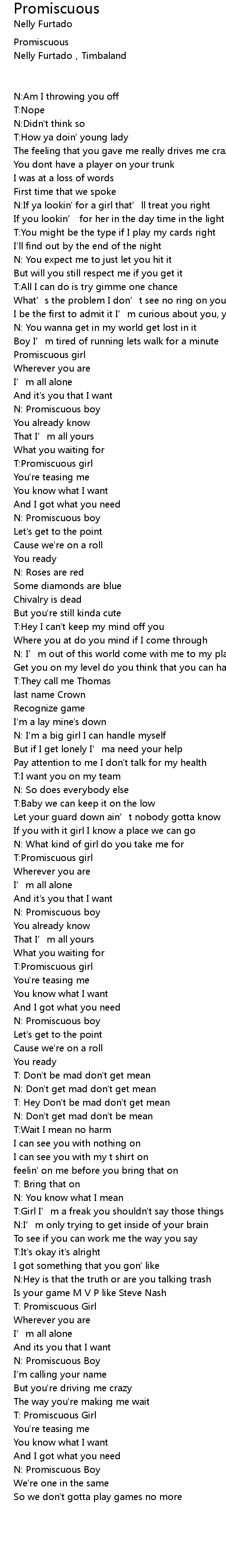 | T: Promiscuous Girl | |