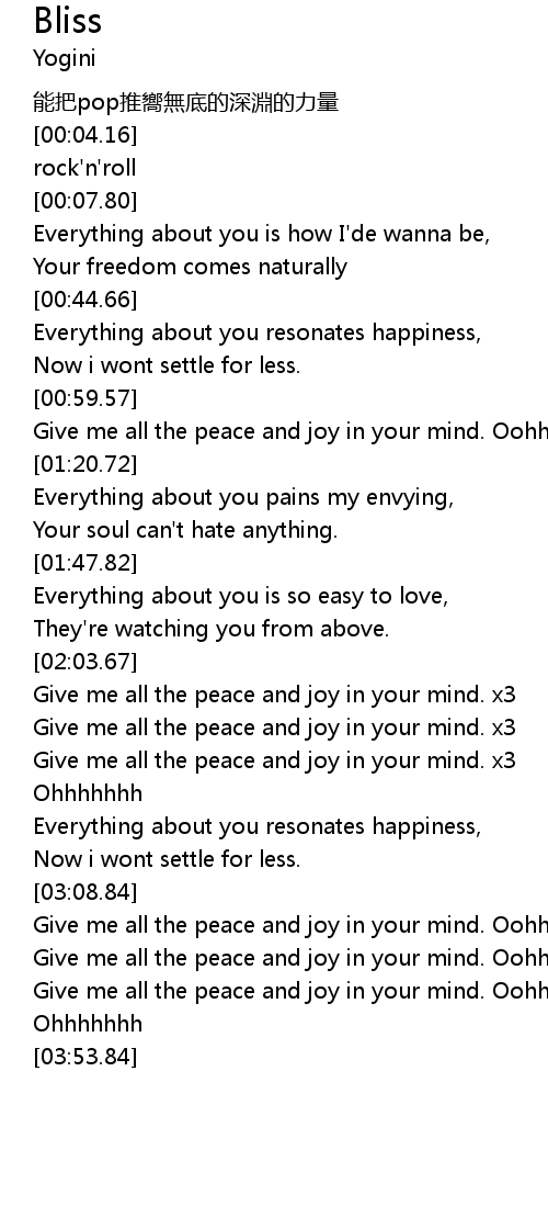 | [02:06.03] | Give me all the peace and joy in your mind. x3 |