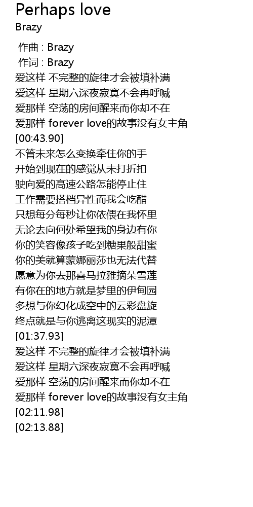 | [01:40.63] | 爱这样 不完整的旋律才会被填补满 |
