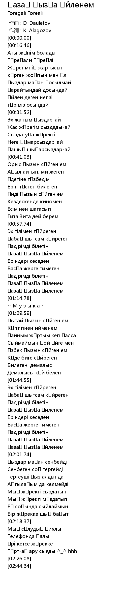 | [00:00.000] | zuò qǔ : D. Dauletov |